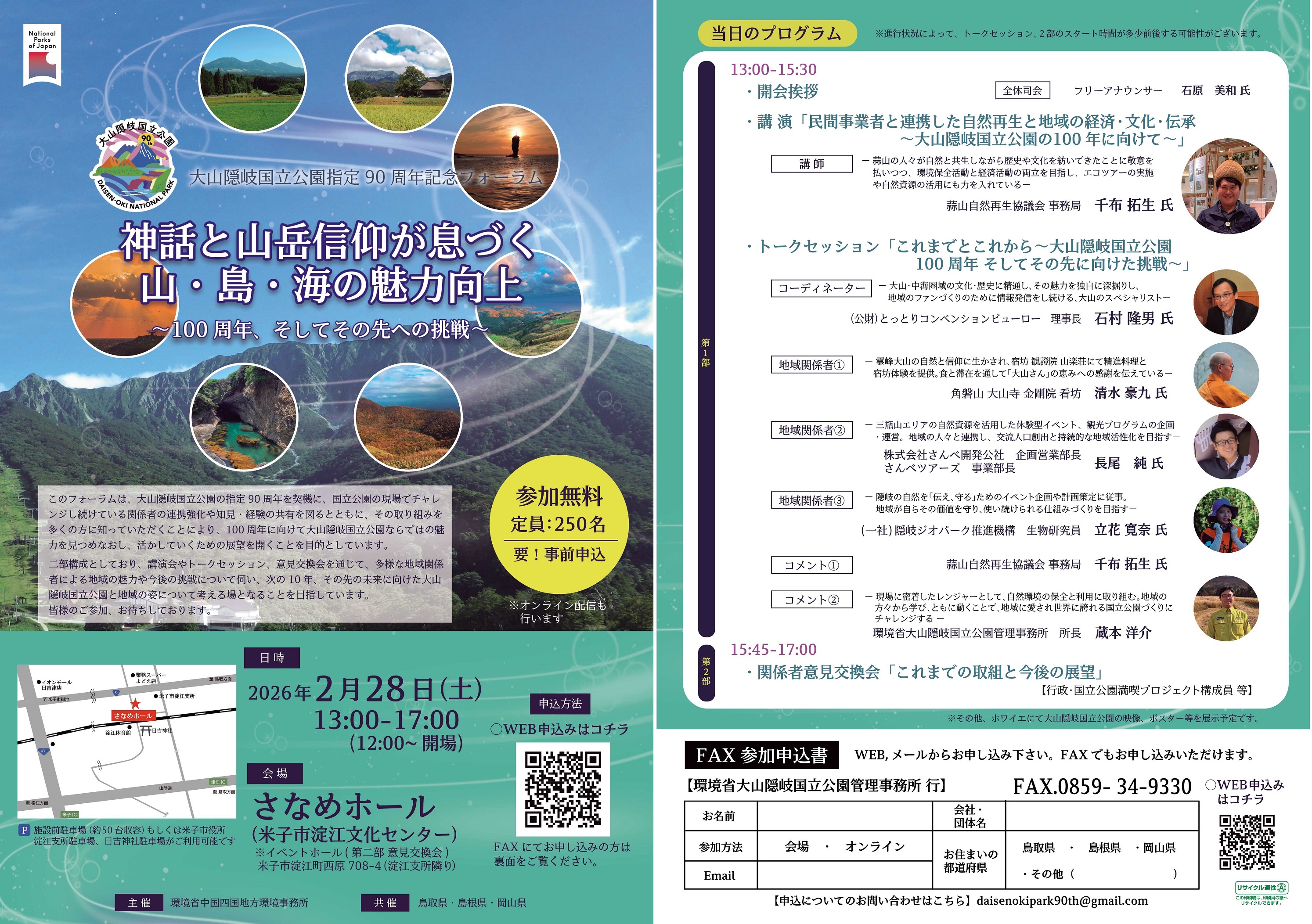 大山隠岐国立公園指定90周年記念フォーラムの開催について